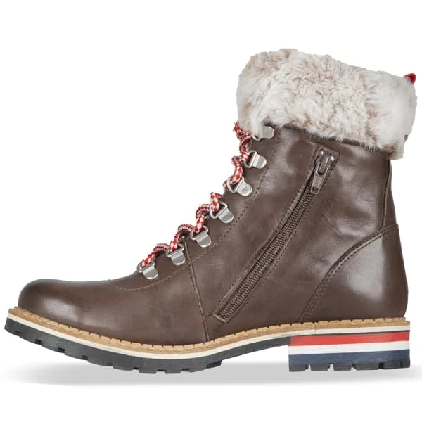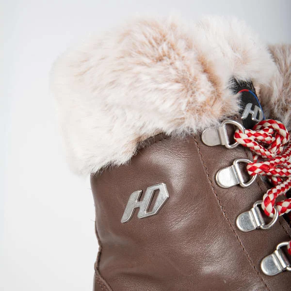 Perfect voor wandelingen in de sneeuw in de stad of in het resort. Dit model heeft een bovenwerk van rundleer, gecombineerd met een fleece voering en synthetisch bont om je voeten warm te houden als het buiten koud is. Het heeft een rits aan de binnenkant van het bovenwerk om het aantrekken te vergemakkelijken, terwijl het traditionele vetersysteem haken heeft voor een berggevoel.