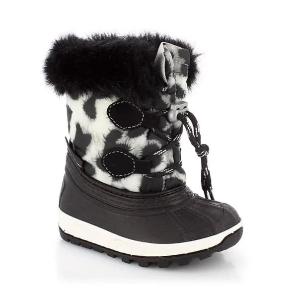 De BAGHERA van Kimberfeel is een prachtig winterlaarsje voor kinderen met een koeienprint waarmee ze hun eerste stapjes in de sneeuw kunnen zetten.