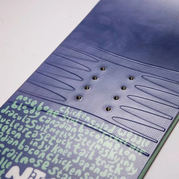 - Camber : Flat-out rocker : het is een hybride model met een vlakke camber onder de voeten en rockers voor en achter die beginnen voor de traditionele contactpunten. Het biedt moeiteloze en soepele bochten. Deze rockers zorgen voor meer drijfvermogen, druk en vergevingsgezindheid voor een speelse en stabiele rit.